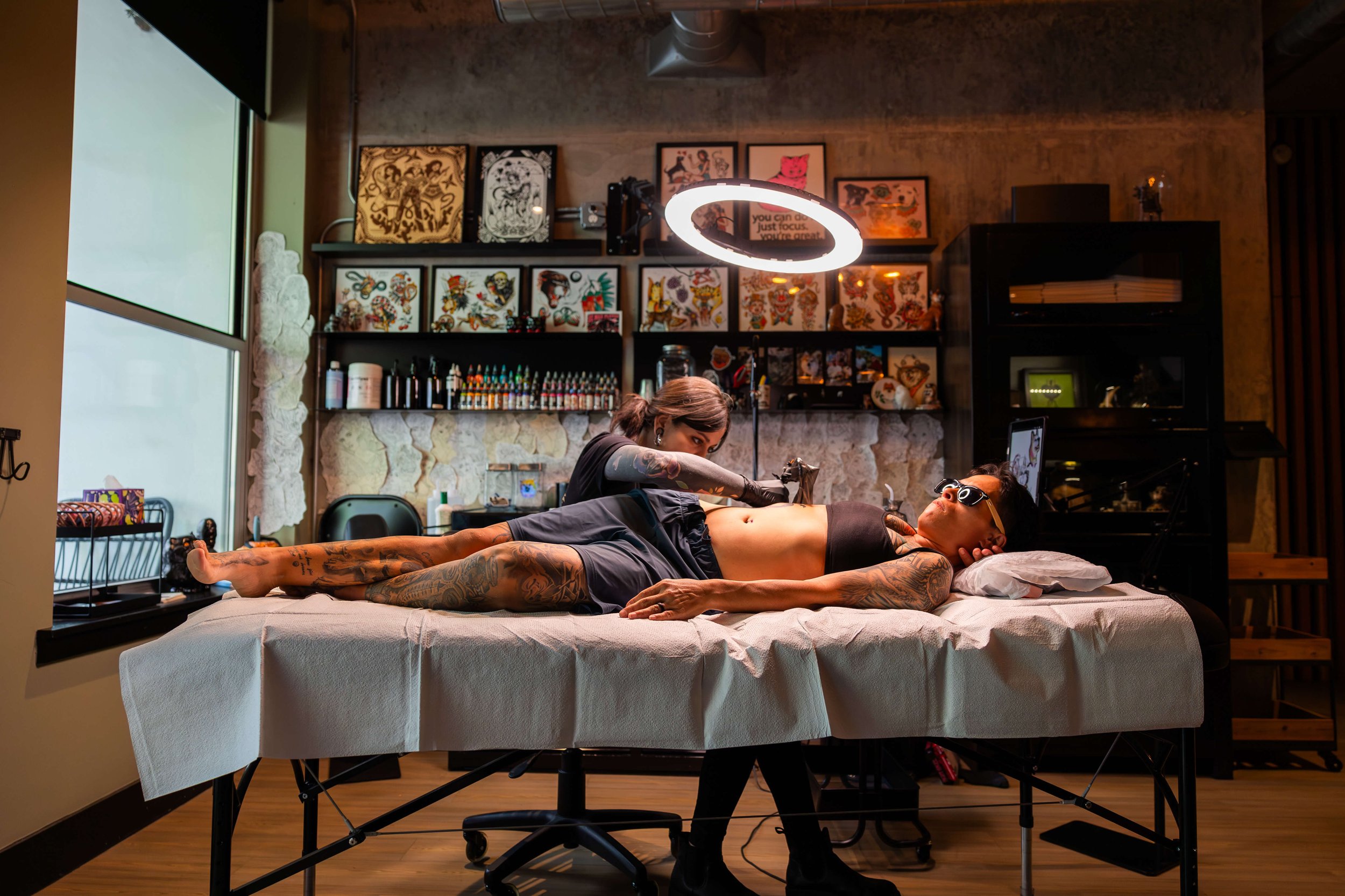 Bring comfy clothes that also allow access to the area getting tattooed, and a sweater if you tend to get cold!